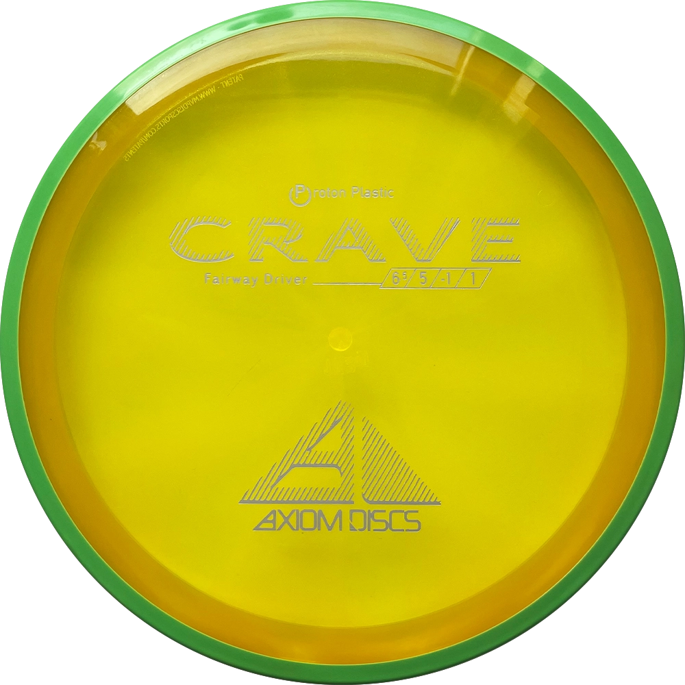 Axiom Crave – To wolny jak na Fairway Driver dysk, który cechuję się 6,5 speed. Idealnie wpasowuje się między dyski średniego zasięgu Midragne a Fairway Driverami. Dysk zapewnia dużo Glide’u i leci naprawdę daleko jak na dysk o tej prędkości.  Jest to absolutnie idealny Fairway dla gracza na każdym poziomie umiejętności. Sprawdzi się na zalesionych polach ale także świetnie radzi sobie na otwartych polach. Jest to jeden z najlepszych i najłatwiejszych do kontrolowania dysków typu Fairway Driver.