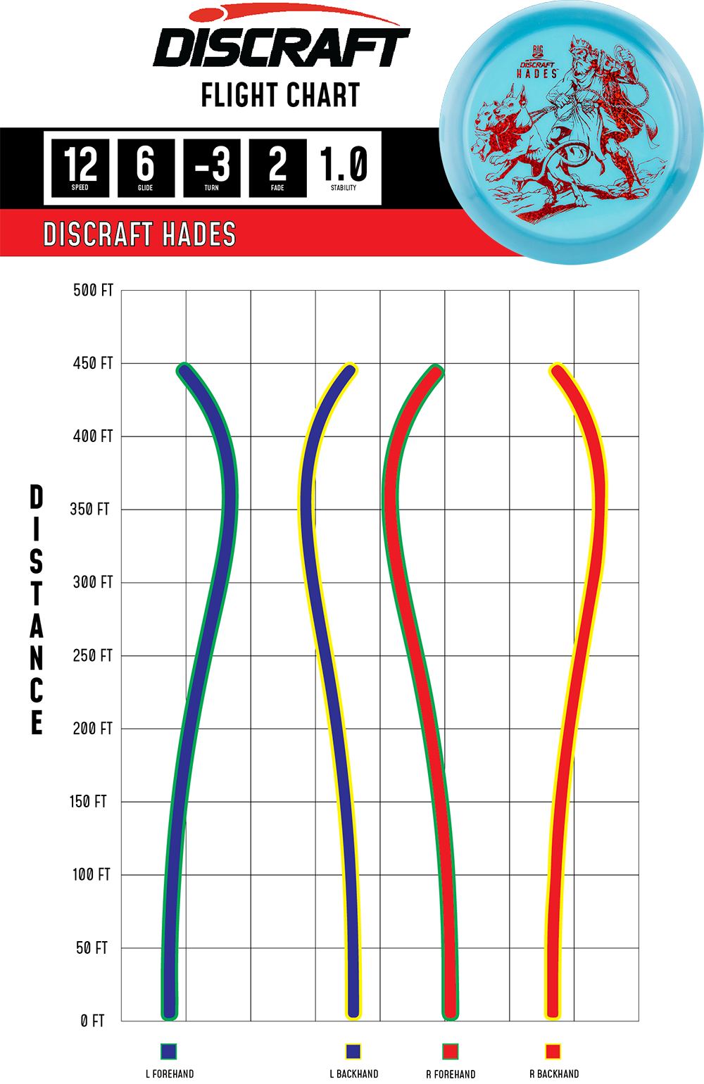 Hades to odznaczający się lekko zmienionym profilem dysk, który pozwala na dłuższe rzuty niż tradycyjne dyski. Zaprojektowany z myślą o szybkości i odległości, Hades posiada również umiarkowany fade na końcu lotu, co sprawia, że jest równocześnie stabilny i zwrotny.