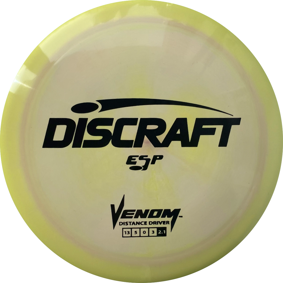 Discraft Venom to bardzo wymagający distance driver. Wyłącznie dla graczy z mocną reką. Wprowadzony w ruch potrafi pokonywać niewiarygodny dystans. Bardzo stabilny, zawsze zakończy lot w lewo (przy rzucie RHBH).