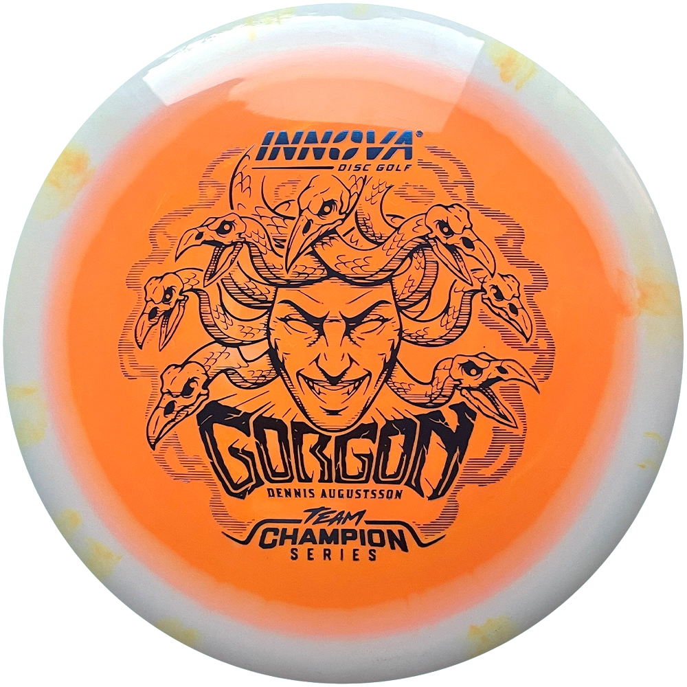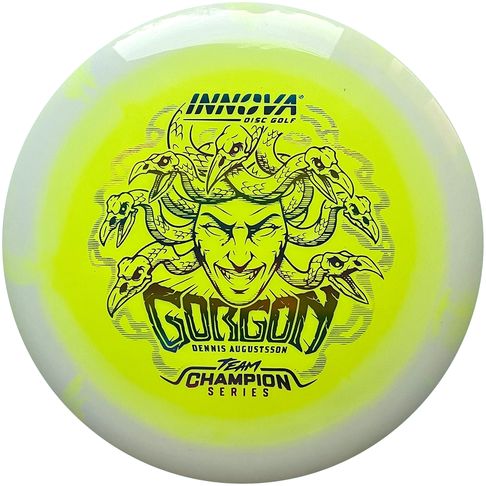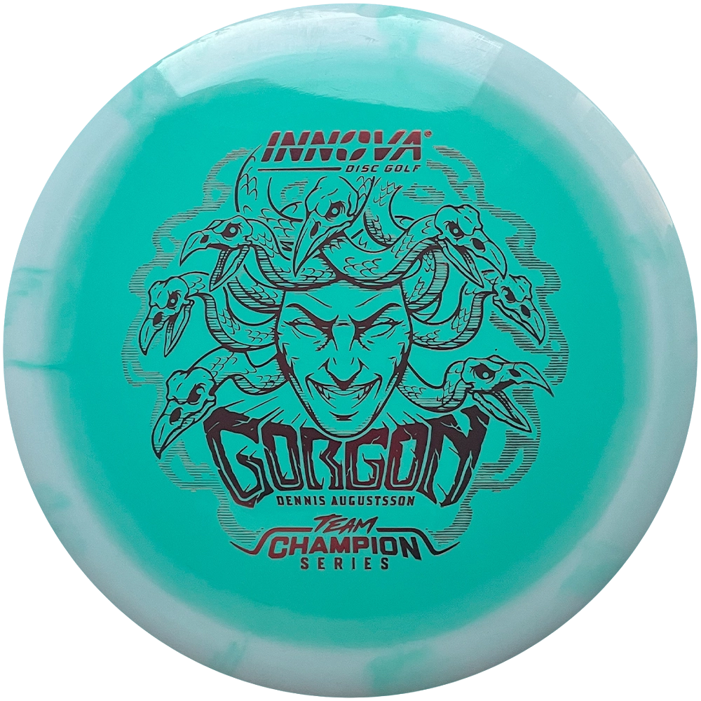 Innova opisuje swój nowy dysk nastepująco: "Przedstawiamy Gorgona, dysk, który łączy w sobie wyczucie, precyzję i łatwość Fairway Drivera z zasięgiem Distance Drivera. Jego lot? Prosta jak strzała z niesamowitym Glide'm oraz z niezachwianym Fade'm, odzwierciedlająca nieustępliwe spojrzenie Gorgona. Przeżyj legendę — prowadź jak bóstwo, podbij pole golfowe."