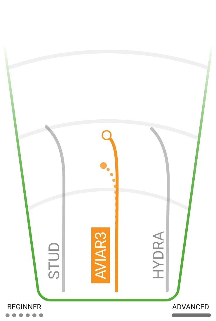 Innova Aviar3 jest bardziej stabilny niż jego poprzednicy, co oznacza, że lepiej utrzymuje kierunek i ma mniejszą skłonność do odchylania się na boki podczas lotu. Dzięki temu dysk oferuje więcej kontroli i precyzji.