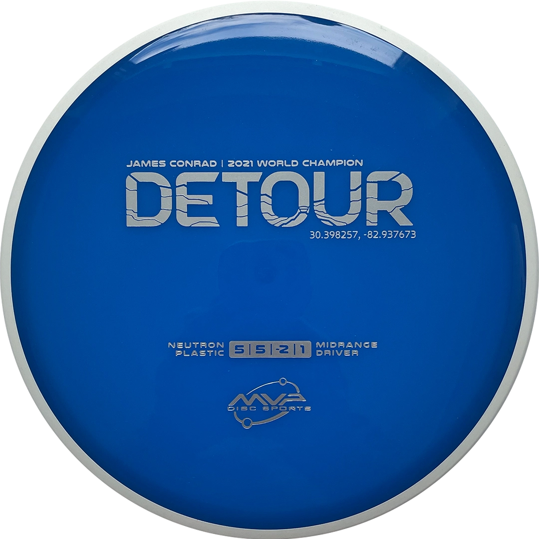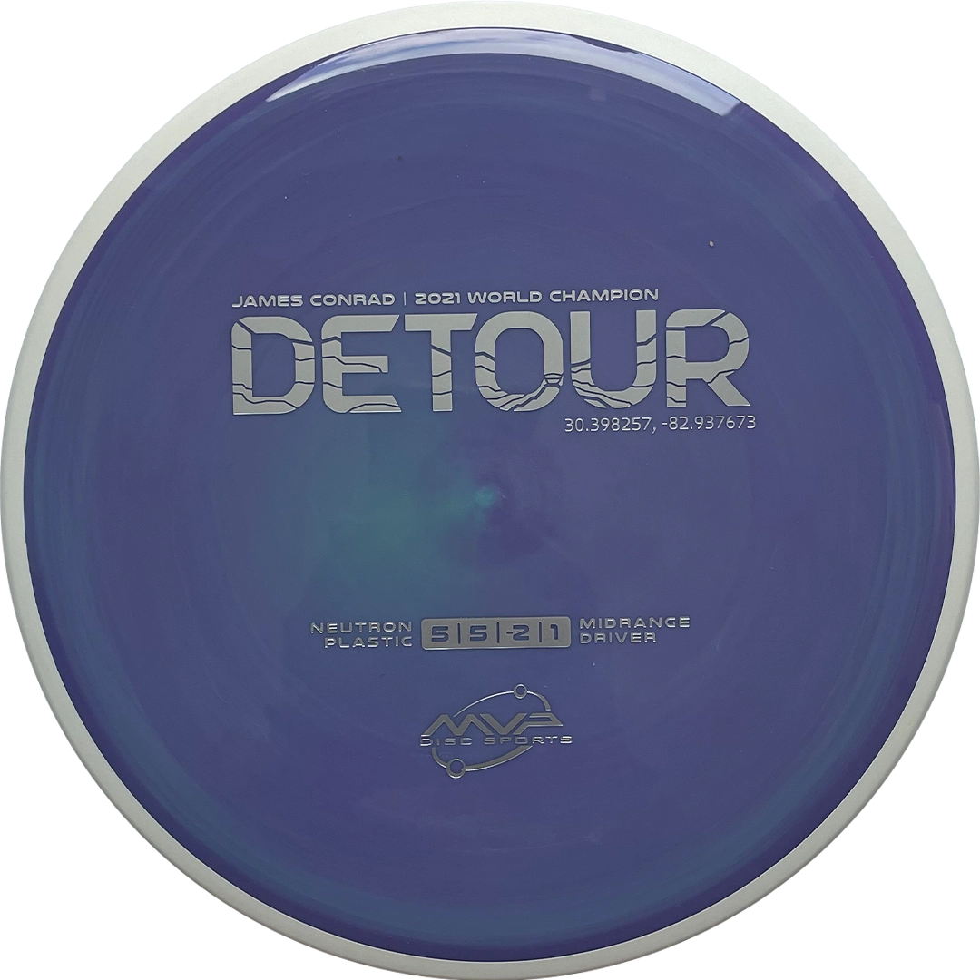 MVP Detour -To pierwszy dysk typu Midrange w ofercie dysków James Conrad od MVP Discs. Jest lekko niestabilny i bardzo dobrze uzupełnia Hex i Reactor. Idealny do długich prostych hyzer flipów w lesie i nie tylko. Wyjątkowo elastyczny Detour jest idealnym dyskiem i bez wątpienia będzie jednym z najpopularniejszych dysków Conrada w historii.